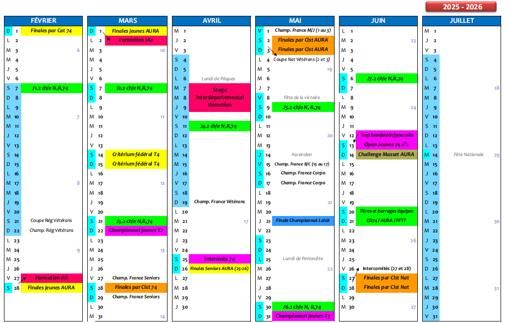 CALENDRIER 2025-2026